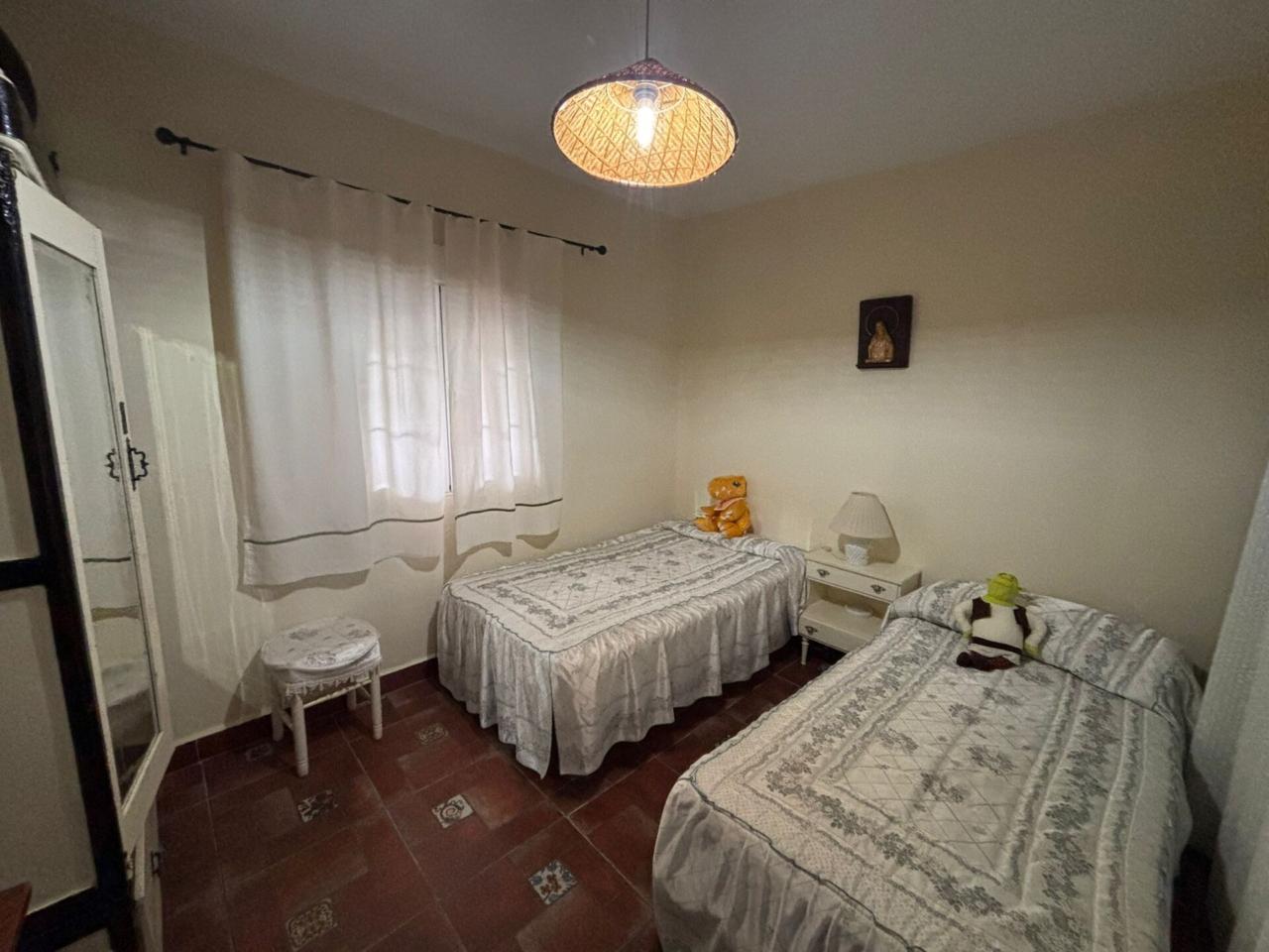La vivienda se vende amueblada y tiene 3 dormitorios (2 armarios) , 2 baños , salón comerdor, cocina amueblada, patio, jardín, piscina , chimenea, aire acondicionado frío/calor, agua caliente , placas solares, una nave de aperos, un pozo y 30 olivos.